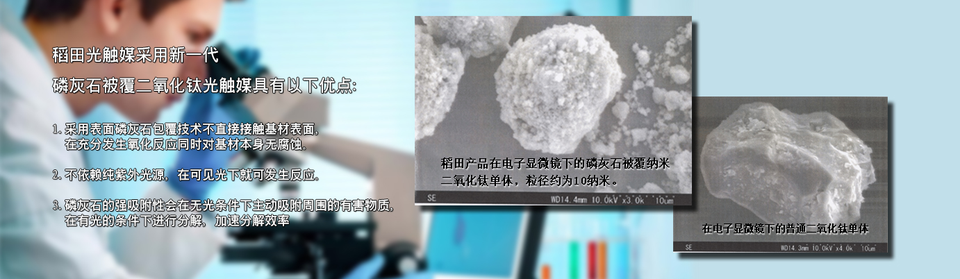 在認(rèn)識(shí)【光觸媒】之前,要先了解什么是【觸媒】。觸媒是日語,翻譯成中文叫催化劑。催化劑是能在化學(xué)反應(yīng)中加速反應(yīng)速率,而本身在反應(yīng)前后并不發(fā)生變化的物質(zhì)。光觸媒是一種以納米級二氧化鈦為代表的具有光催化功能的光半導(dǎo)體材料的總稱。它涂布于基材表面,在光線的作用下,產(chǎn)生強(qiáng)烈催化降解功能:能有效地降解空氣中有毒有害氣體;能有效殺滅多種細(xì)菌,并能將細(xì)菌或真菌釋放出的毒素分解及無害化處理;同時(shí)還具備除臭、抗污、凈化空氣等功能。 稻田光觸媒采用【磷灰石被覆納米二氧化鈦分子結(jié)構(gòu)】,具有吸附、分解、去除、無毒化的特質(zhì)。表面磷灰石包覆技術(shù)不直接接觸基材表面,在充分發(fā)生氧化反應(yīng)的同時(shí)對基材本身無腐蝕。其中的【磷灰石】成分,具有強(qiáng)大的吸附能力,可以隨時(shí)吸附空氣中的異味源、細(xì)菌、病毒等有害物質(zhì),再交由【二氧化鈦】在光源下進(jìn)行分解反應(yīng),因此能夠24小時(shí)吸附、分解